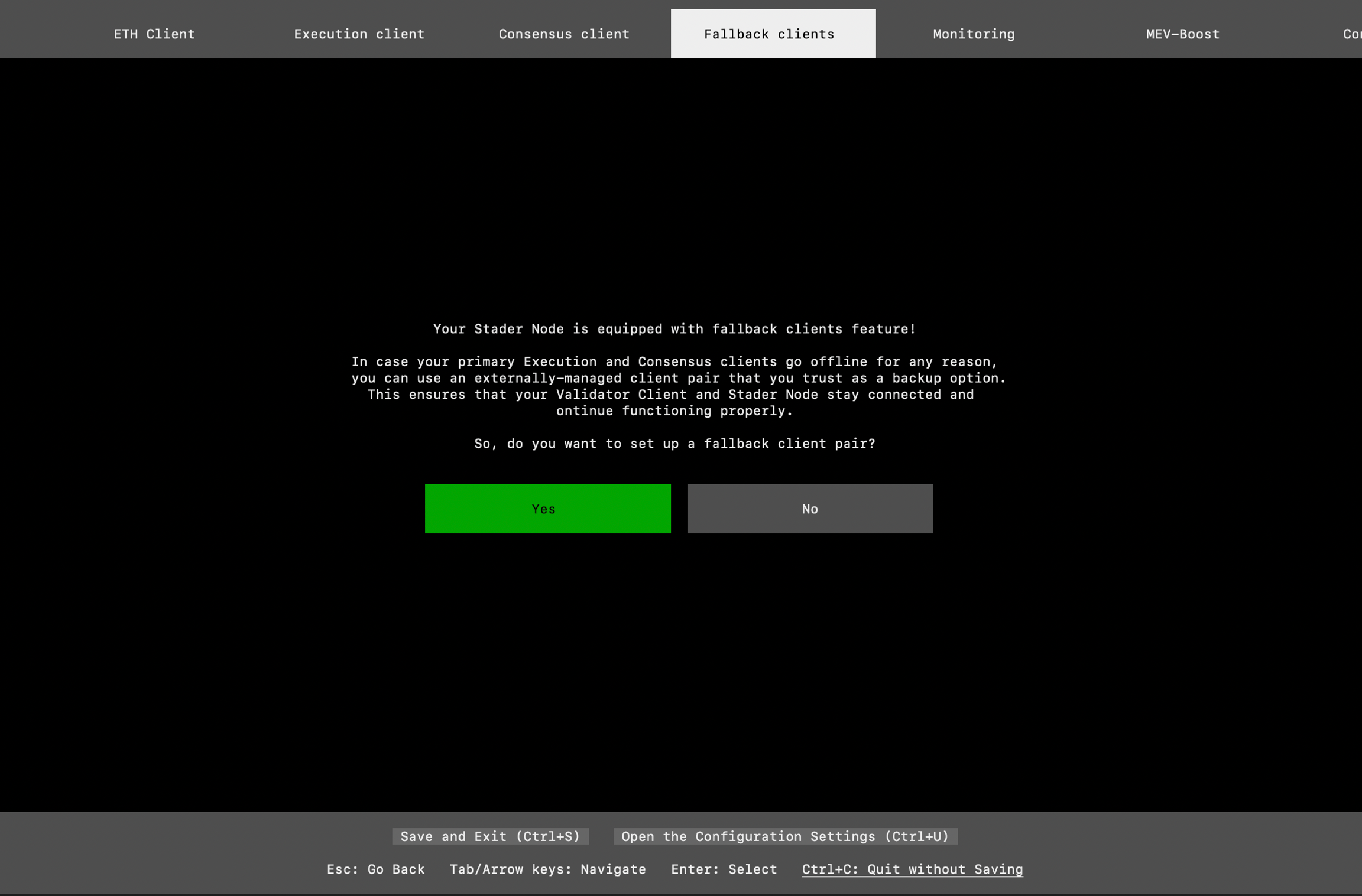 A fallback client option should not be mistaken for a "backup" Stader node. While fallback clients have a synchronized Execution and Consensus client pair running on the chain, they do not have access to your node's wallet or validator keys. Therefore, if your Stader node is offline, the fallback client will not assume the role of validating on node's behalf.