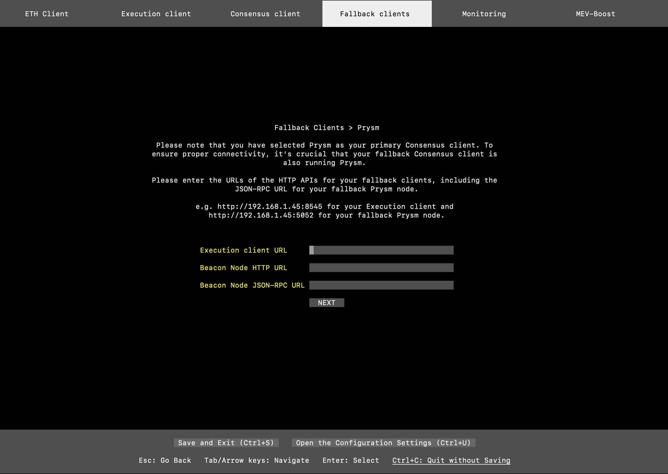 Then then just enter the Execution client URL or Beacon node HTTP URL or Beacon node JSON RPC URL based on your consensus client preference.