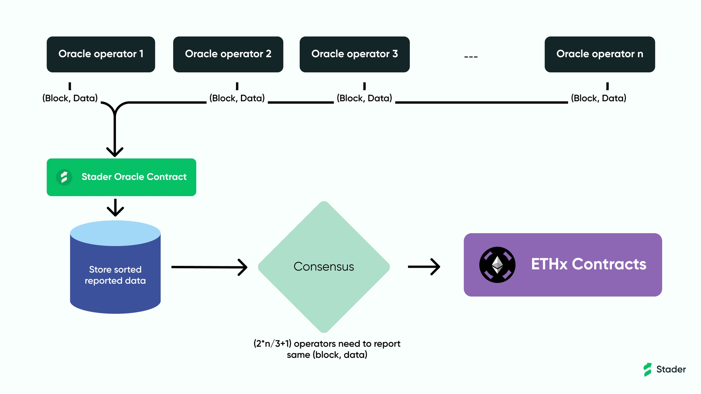 Ethereum started as a proof-of-work blockchain and, in recent years, transitioned into a proof-of-stake blockchain. At its core, the two blockchains, Execution Layer and Consensus Layer, form the Ethereum network. The execution layer holds the contract data, and the consensus layer holds staking information (regarding validators). ETHx smart contracts make decisions based on the data from the consensus layer. Hence, Oracles are needed to bridge this gap by fetching validator data from the Consensus Layer and supplying it to the Execution Layer.
